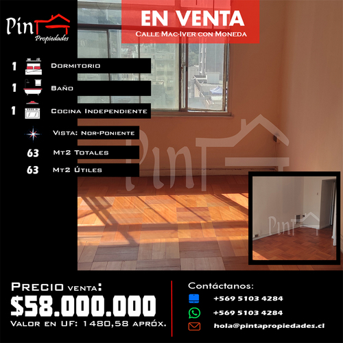 En VentaPrecio: $58.000.000 pesos.Departamento Monoambiente Enrique Mac-IverEnrique Mac-Iver 14235 mt211